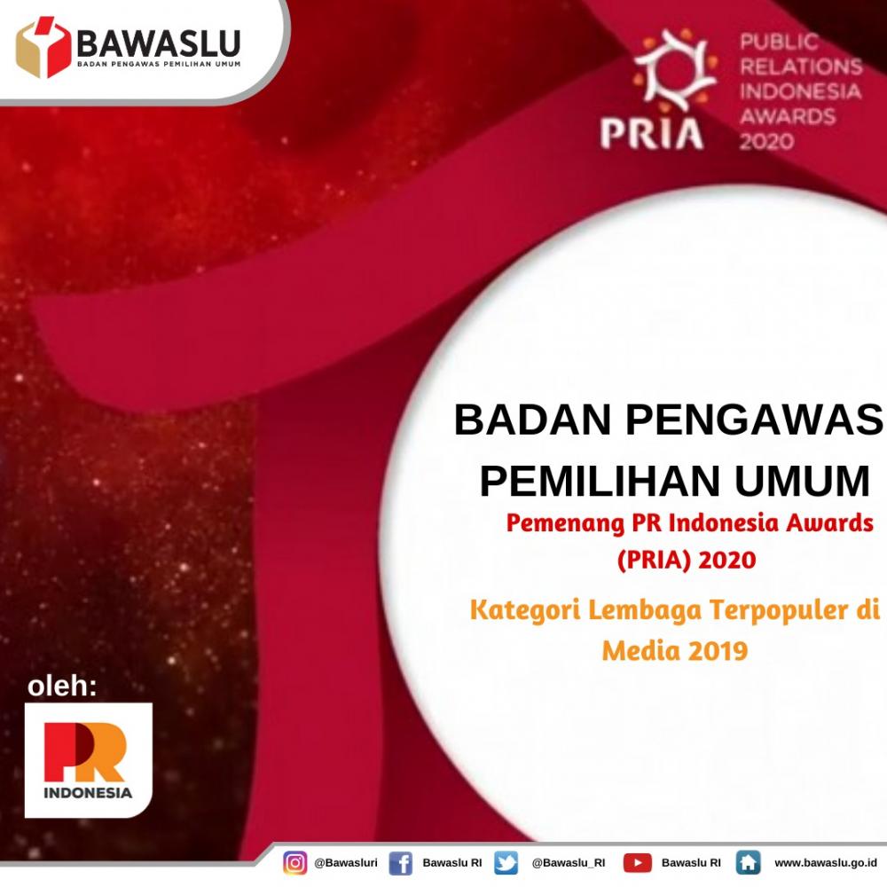 Jakarta (20/4)--- Sebagai lembaga yang dengat dengan masyarakat dan banyak memberikan informasi dan eduakasi, kinerja Bawaslu diapresiasi banyak lembaga, salah satunya oleh Public Relationship Indonesia Award. Hari ini, Bawaslu dinobatkan sebagai Pemenang PR Indonesia Awards (PRIA) 2020 dalam ... [selengkapnya]